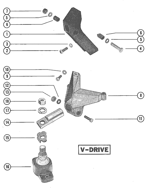 Category: Gas; Others; 233 MIE INBOARD FORD 351 V-8 1975-1976; 4173000 THRU 4775784; TRANSMISSION AND ENGINE MOUNTING (V-DRIVE)