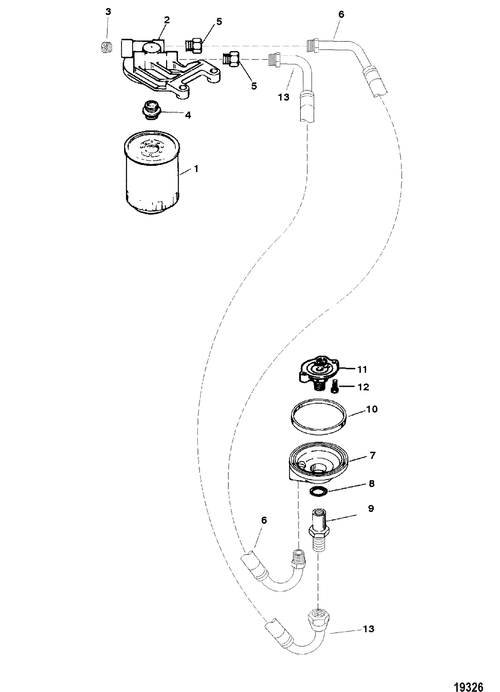Category: Gas; Others; 350 MAG MPI HORIZON MIE INBOARD; 0L302200 THRU 0M299999; Oil Filter and Adaptor