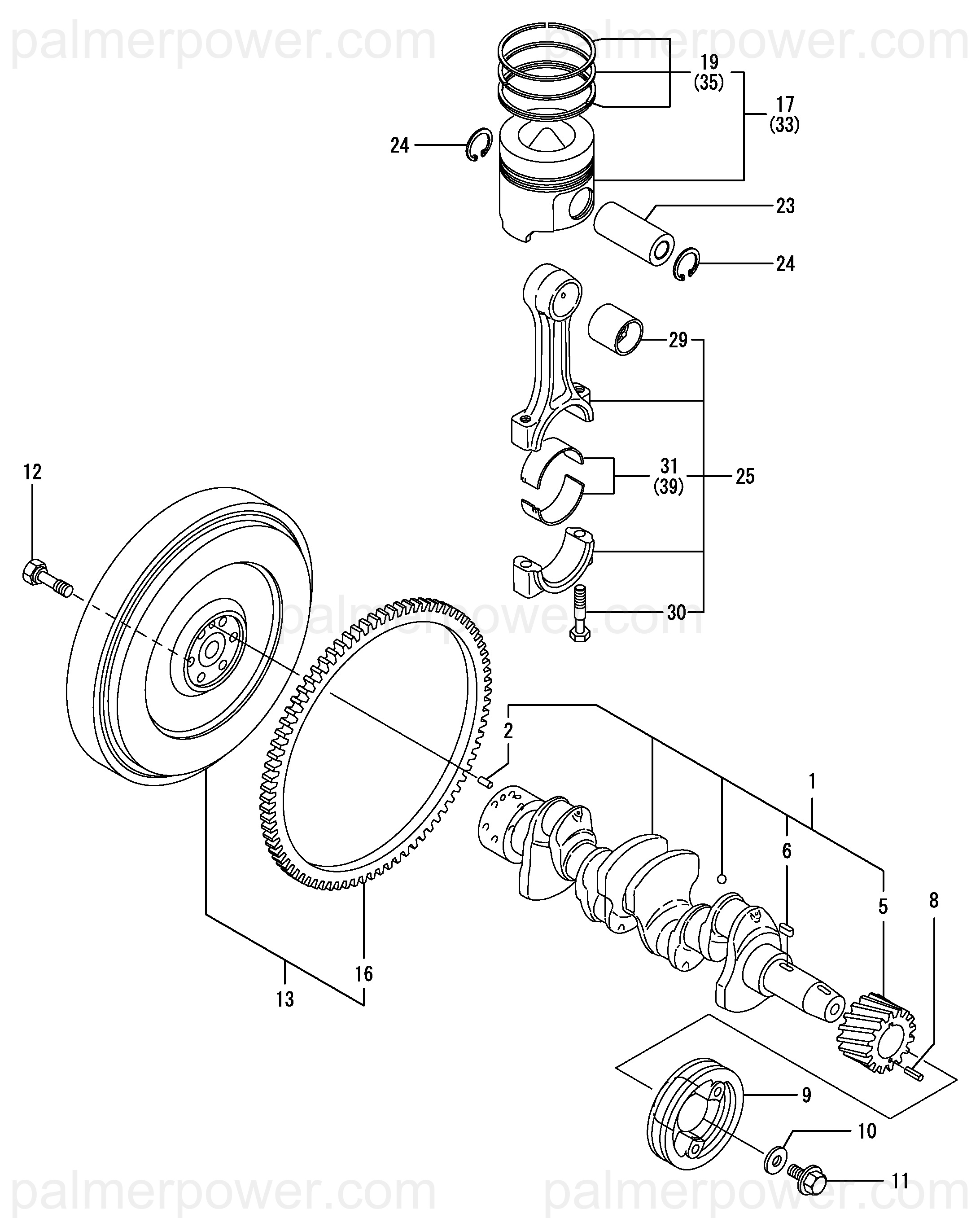 | 29 | BEARING, PISTON PIN | 129100-23910 |