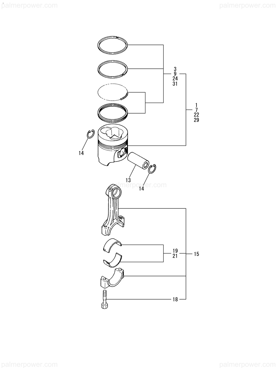 | 22 | PISTON ASSY, 0.25 OS | 729692-22600 |
