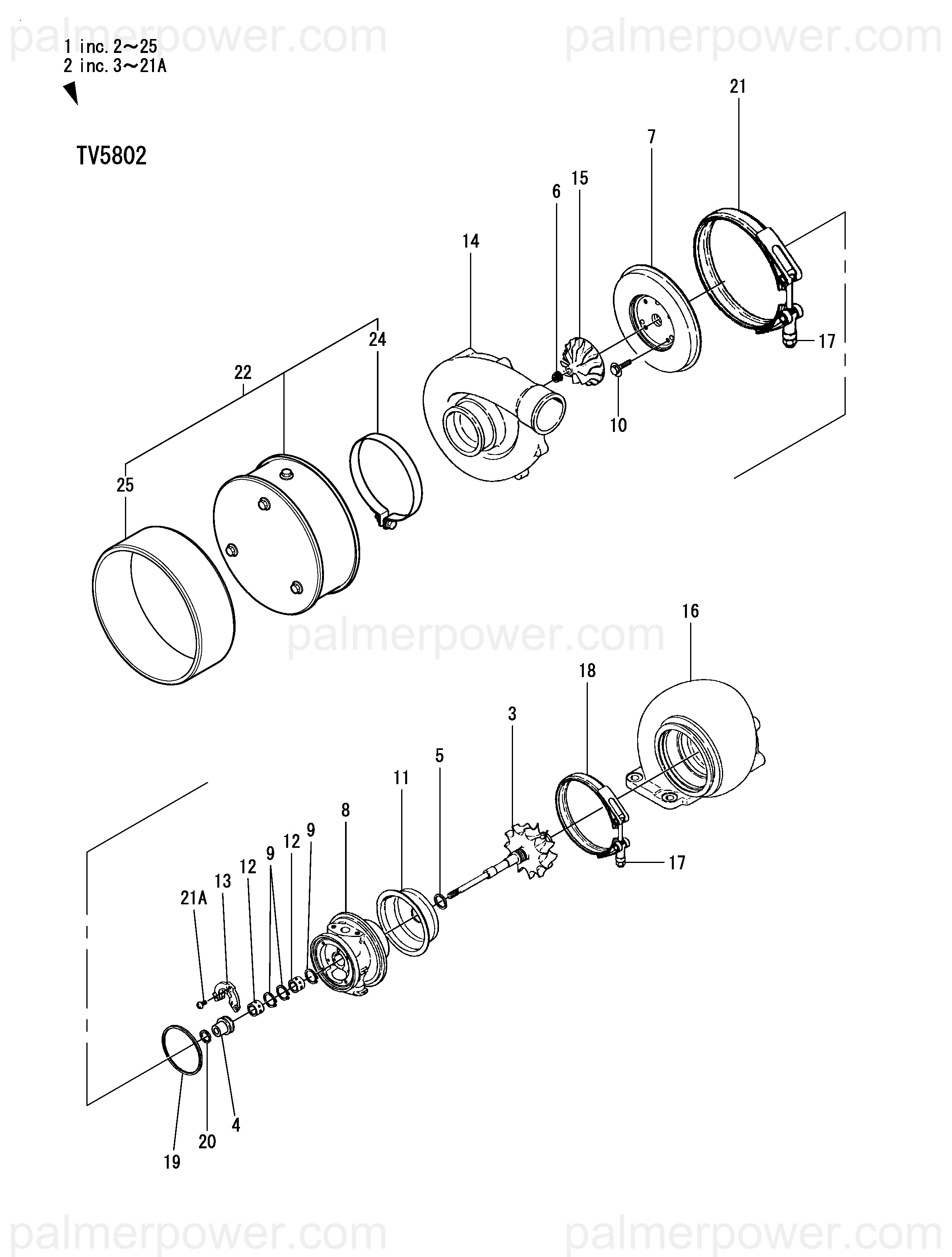 | 2-3 | TURBOCHARGER, TV5802 | 128624-18013 |